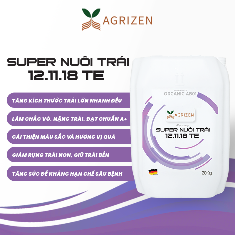 SUPER NUÔI TRÁI 12.11.18+TE (CAN 20KG) – NƯỚC ĐẬM ĐẶC, LỚN TRÁI, NẶNG KÝ