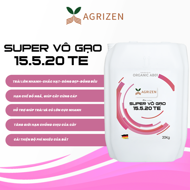 SUPER VÔ GẠO 15.5.20+TE (CAN 20KG) – NƯỚC ĐẬM ĐẶC, CHẮC HẠT, SÁNG BÓNG